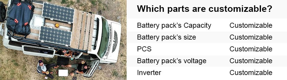2pcs 100Ah lithium batteries, large enough to store 2.4KWh of power. New type lithium battery which has higher charge/discharge efficiency and more than 3000 times deep cycles. Over 10 years of lifespan, much longer than lead acid batteries. With built-in BMS(battery management system), preventing the lithium battery from overcharge, overdischarge, overheat and short circuit.