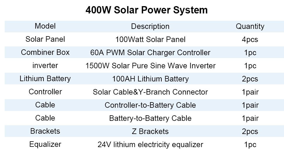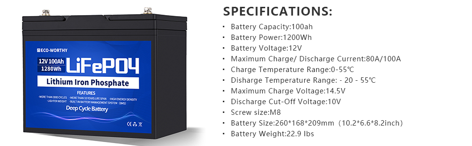 The lithium battery has a built-in Battery Management System (BMS) that can protect it from overcharging, deep discharge, overload, overheating and short circuit, and low self-discharge rate. Can be used in parallel, more suitable for 24V solar panel kit, less wires, less heat loss and less balance issue.