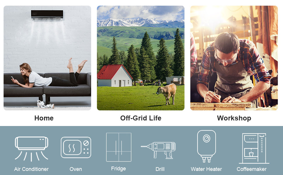 The combination of 5000W 48v DC to 110V/120V AC pure sine wave inverter and 80A MPPT controller provides stable output for your appliances, reduces the wires in your solar power, more than 95% efficiency, maximizes energy usage, and protects your battery from short circuit, overvoltage and under voltage, overload, reverse.