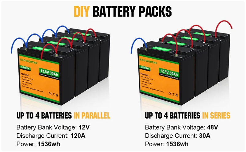 ·Longer Life Span: Up to 80% capacity for 3000 cycles in recommended conditions. The typical SLA has 300-400 cycles. ECO-WORTHY Lithium batteries last so long that the price per use is a fraction of traditional batteries.·Lightweight Champion: Our lithium battery is only 1/3 of the weight of a lead-acid battery, easy to move and install. It is an ideal choice for outdoor camping power supply and simple indoor installation.·High Efficiency: It provides up to 95% of their rated capacity while a lead-acid battery is usually limited to 50%. You get all the juice down to the last drop. It can support fast charging or solar panel charging.·Extremely Safe: LiFePO4 batteries are safest battery type available today. ECO-WORTHY lithium battery has a built-in Battery Management System(BMS), we can guarantee the safety and reliability of our batteries.·Wide Application: Suitable for RVs, Solar systems, off-grid, Boats, Fish finders, Power wheels, Scooters, Industry, Hiking, Camping, Backup power supply, etc.