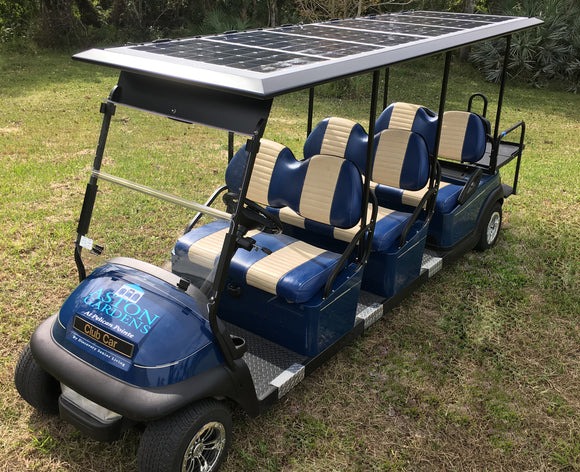 Any golf cart will be powered with solar as long as its battery is solar-rechargeable.